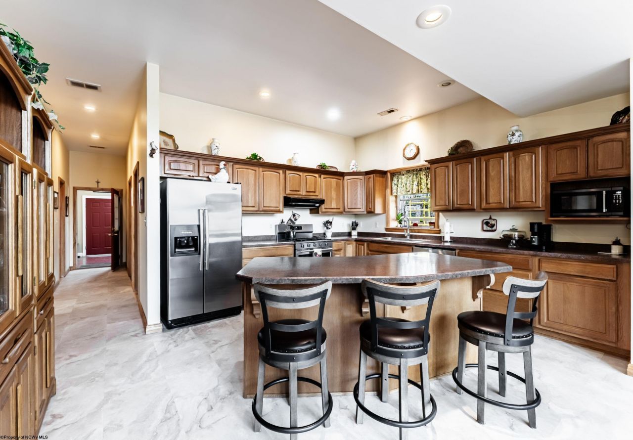 Whether you're looking for a retreat or your forever piece of almost heaven, this could be yours. 15.09+/- AC property has many perks. Large 4 door pole barn at end of house, with room for all your big boy/girl toys, cars or lawn equipment, boat or motor home under one roof. Great room boasts cathedral ceiling with glass to the peak, giving beautiful views. Stone on fireplace gather from property, as well as the hickory floors in great room, hall and primary bedroom. Plenty of cabinets in kitchen and newer stainless appliances, gas range and hard surface counters. Large pantry off kitchen gives you even more storage. French doors to deck...read more